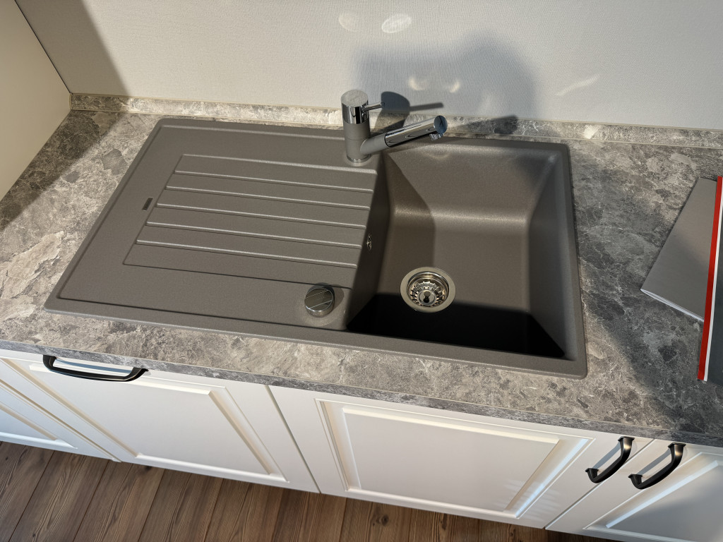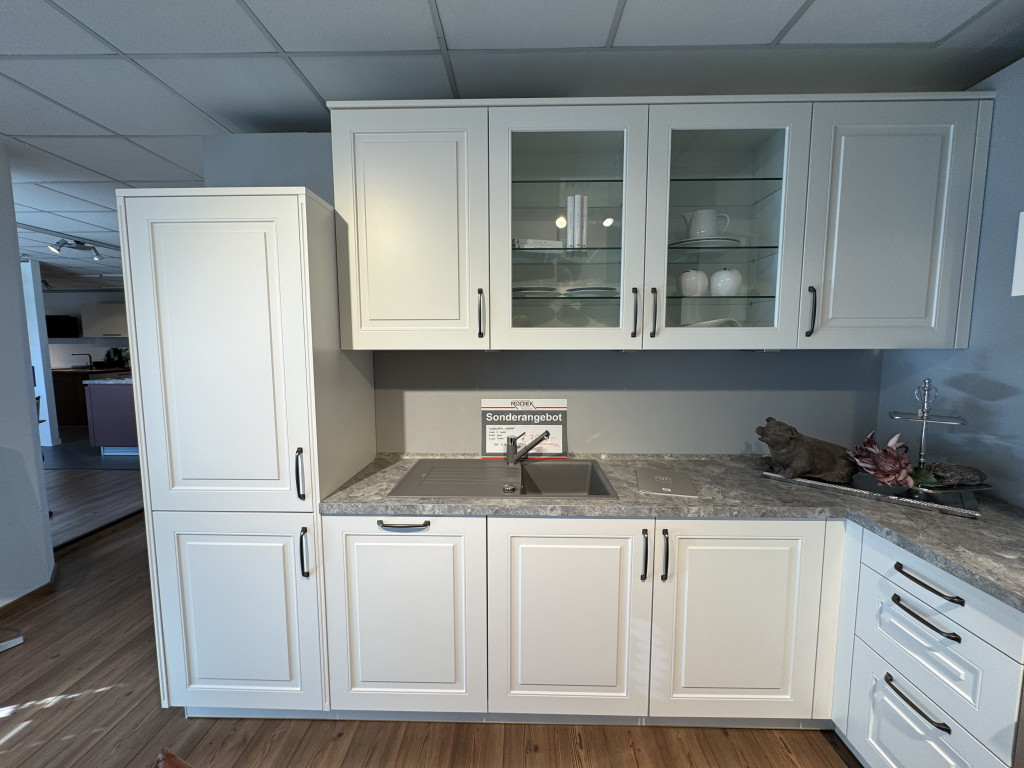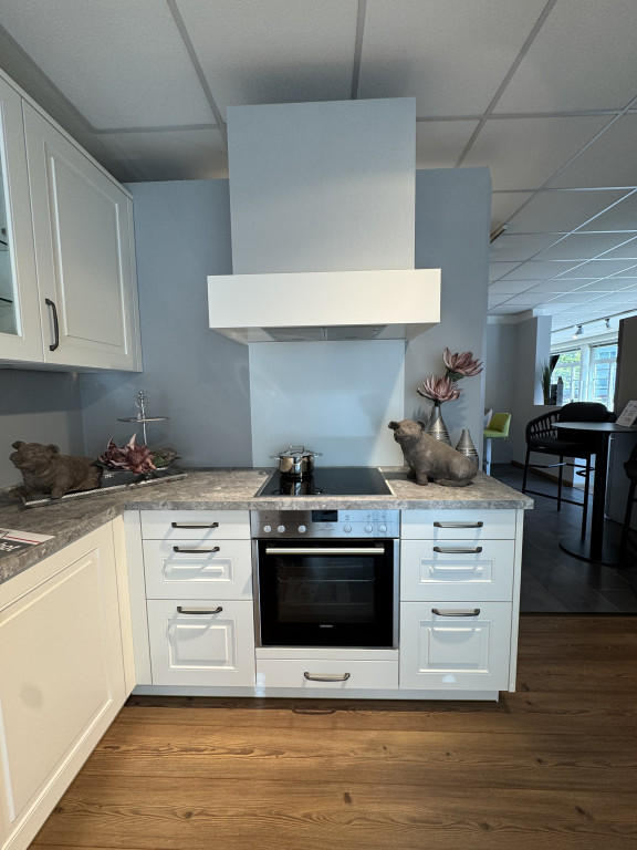 Musterküche LORRAINELandhausküche weiß lackiertmit Siemens-Elektrogeräten, Spüle, Mischbatterie und Unterbauleuchtenca. 310 x 225 cm Abholpreis
