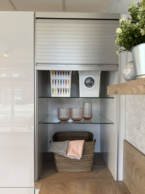 HWR-RaumHochglanzfront hellgraueinschl. Spüle, Mischbatterie,Jalousieschrank, ohne WaschmaschineAbholpreis