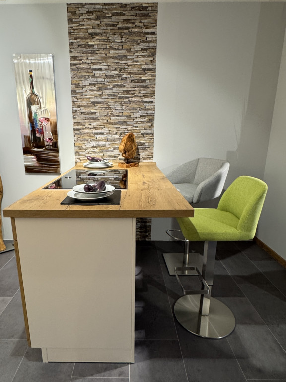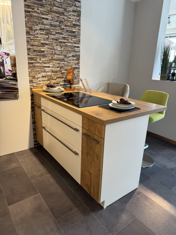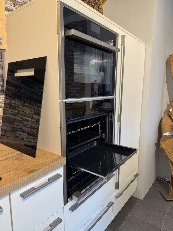 Musterküche Calasmagnolia lackiertmit Neff-ElektrogerätenSpüle und Mischbatterie Besonderheiten:DampfgarerKochfeld mit integrierter. AbzugAbholpreis